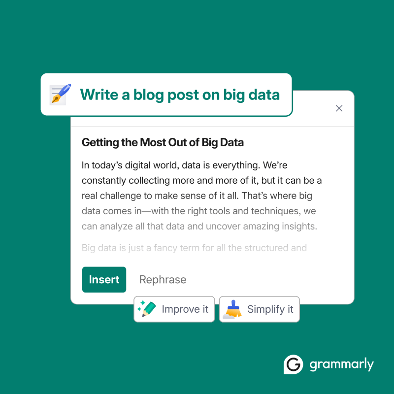 - Drafting content based on prompts: Some AI writing tools, like Grammarly, can generate a rough draft from just a short input—helpful when you need to get started quickly.