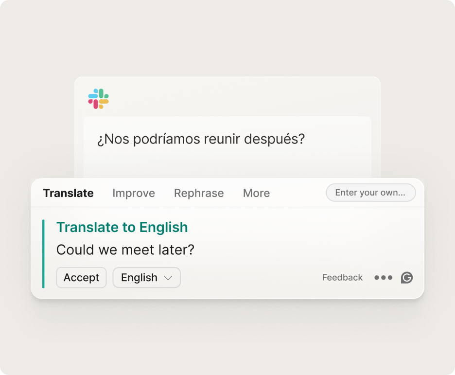 Mantén el ritmo mientras trabajas con traducción integrada en 19 idiomas.