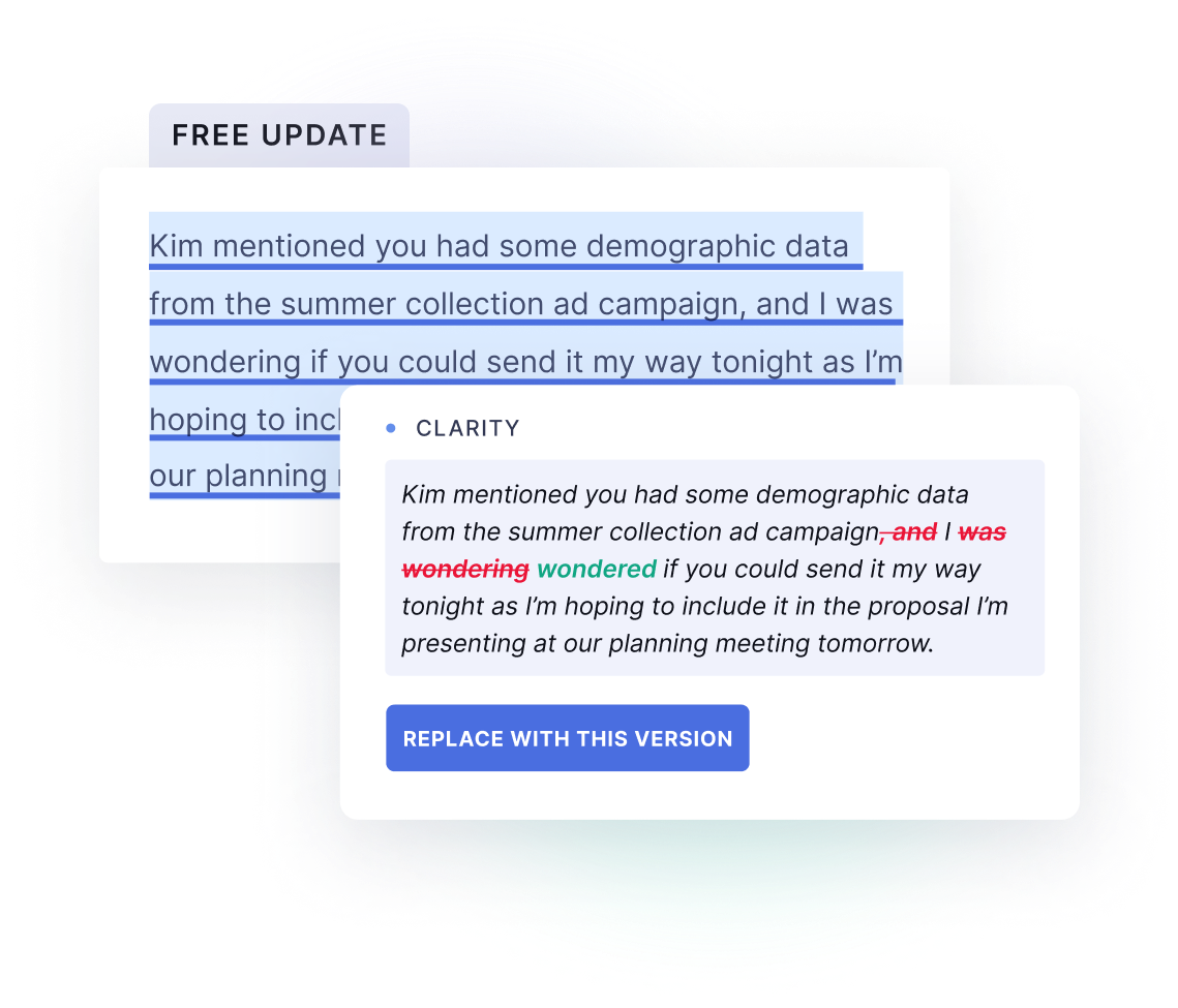 Now when you write in Spanish, French, Portuguese, German, or Italian, you’ll see the same intuitive red underlines you know from using Grammarly in English. Whether customer emails or internal updates, every message is polished and professional.